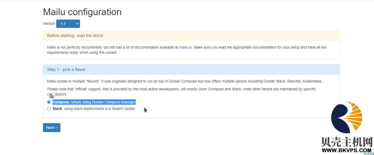 在第一步中选择Compose, simply using Docker Compose manager