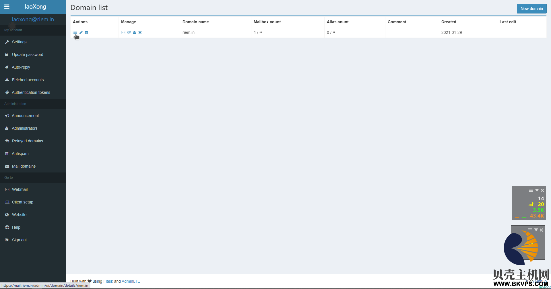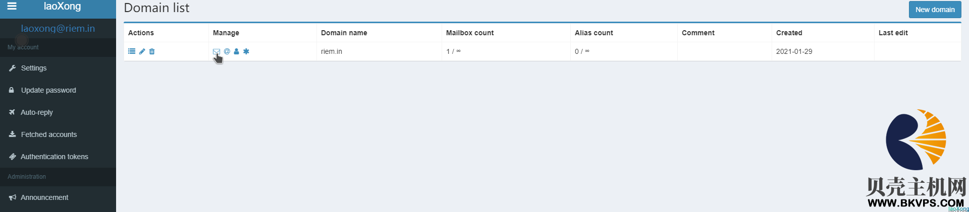 - 管理员功能 全局管理员,公告,每域配额